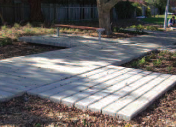 Mike Walker, the council landscape architect, designed the installation. “Although we specified the system as a practical solution,” Mike said, “there was also an aesthetic reason, as the boardwalk enhances the park environment.” Seating platforms were also created, branching from the sides of the boardwalk, to provide an opportunity for passersby to sit in the shade of the trees and, eventually, appreciate the garden beds planted beside the pathway.